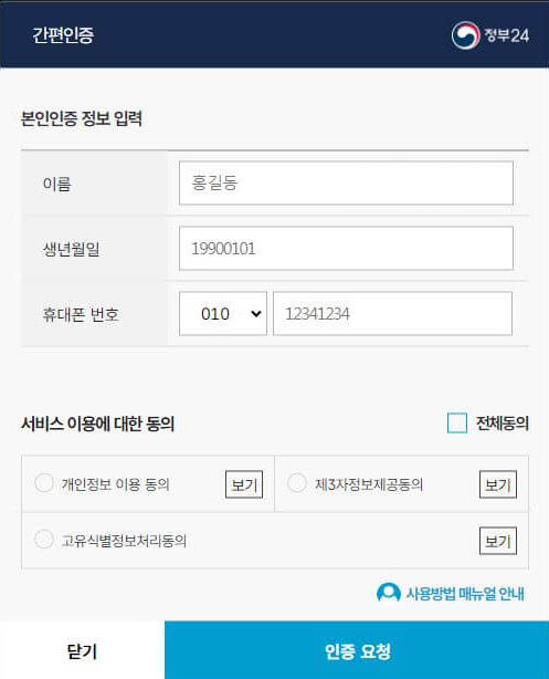 - 본인 휴대폰 : 휴대폰 본인 인증