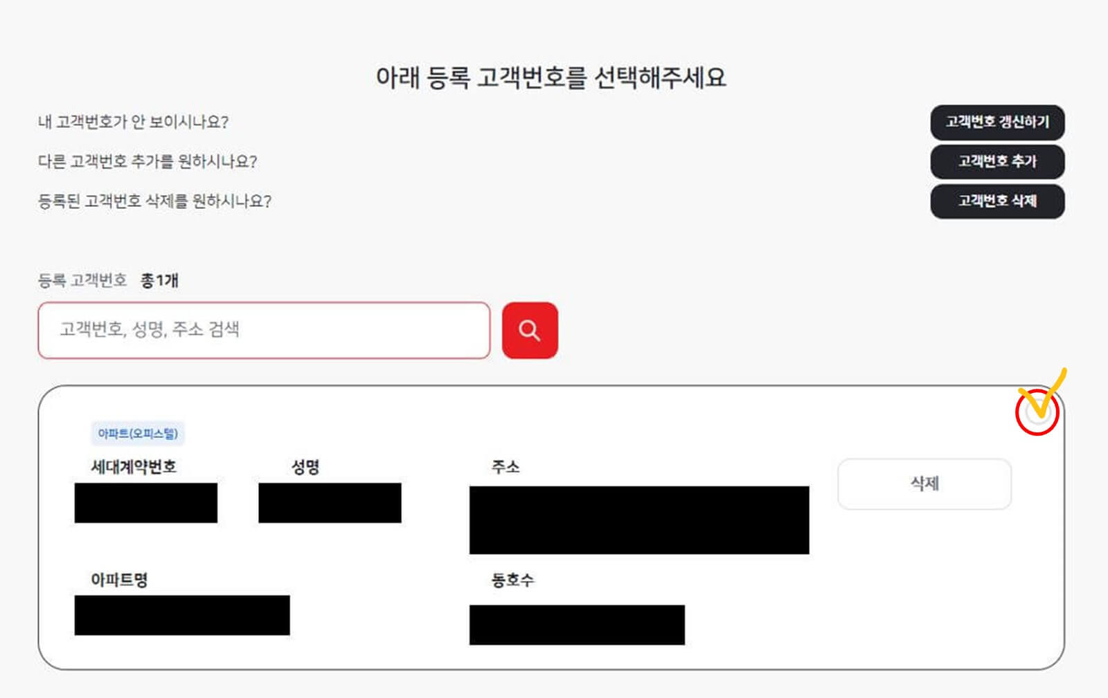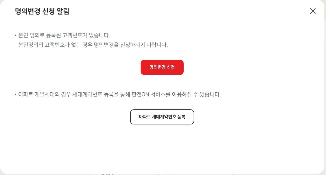 4. 화면 상단에서 해당 거주지에 대한 고객 번호를 확인할 수 있습니다.